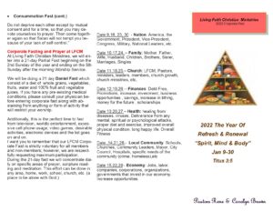 We encourage you to join us on our annual Corporate Daniel Fast! It’s a time to renew the body, mind, and spirit and start the new year strong!